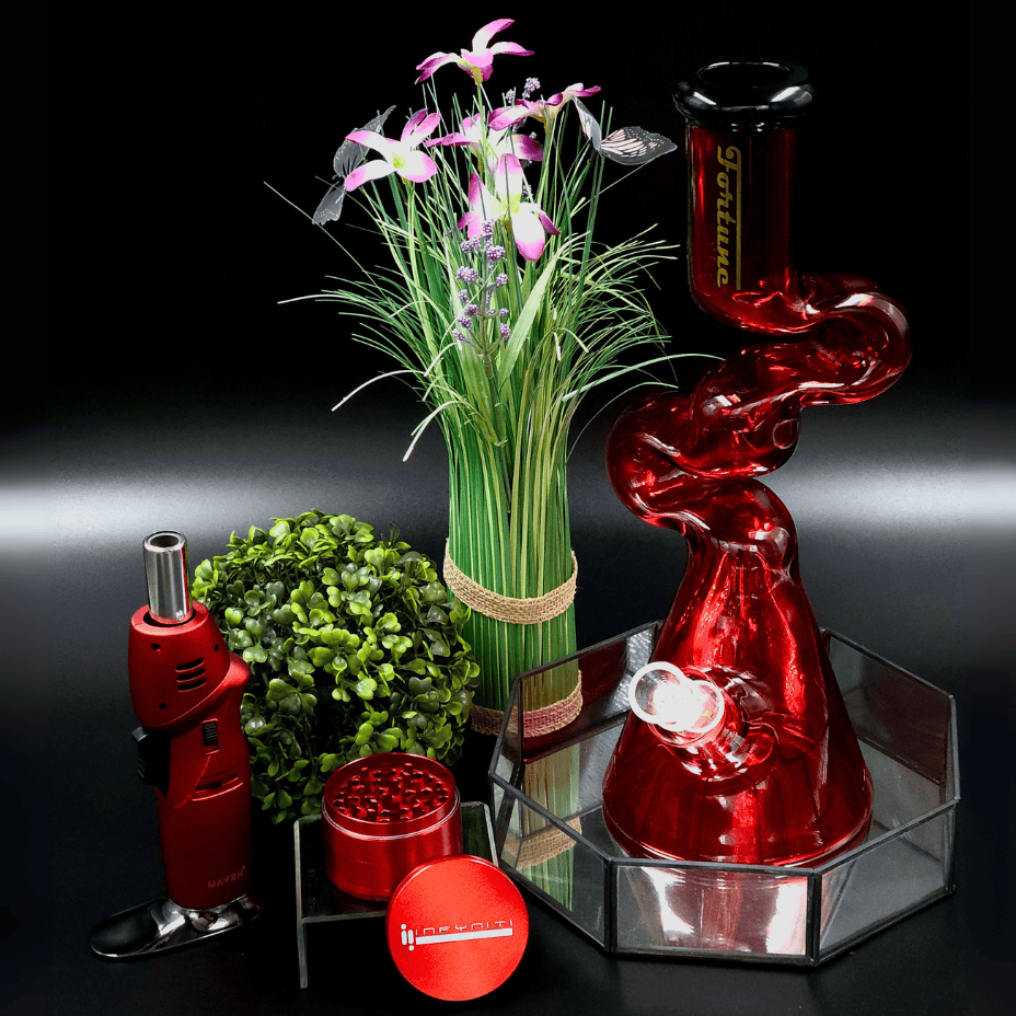 Enjoy a pop of colour with the Fortune Zig-Zag Zong! These vibrant 14 inch tall pieces are blown from coloured borosilicate glass, each with a 7mm thickness; making each just as durable as they are striking. The 2 arms give this shorter piece more travel time, so smoke gets more allowance to cool before reaching the top.